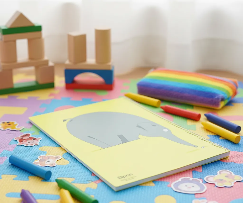 ترکیب رنگی شاد و چهره احساسی فیل باعث می‌شود کودک احساس خوبی از داشتن دفتر داشته باشد.