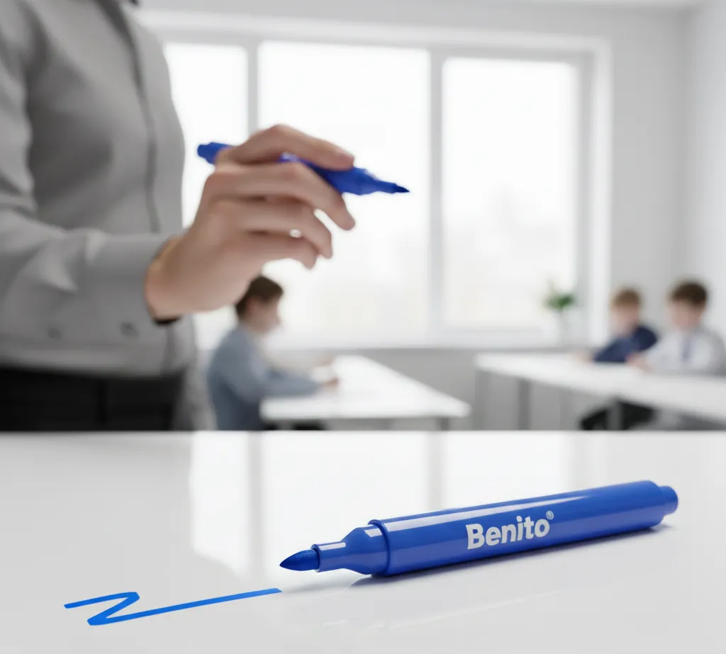 استفاده از ماژیک غیر استاندارد روی تخته وایتبرد باعث ایجاد لکههای دائمی و دشوار برای پاک شدن میشود. روشهای پاکسازی حرفهای و پیشگیری از این مشکل شامل: استفاده از ماژیک وایتبرد با کیفیت، نگهداری درست و پاک کردن سریع جوهر است. محصولی مانند ماژیک وایتبرد گرد آبی بنیتو بهترین گزینه برای تجربه نوشتار روان و پاکشدن آسان است.